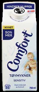 Såpe et utvalg, 250–300 ml 66,67–80,00/liter Førpris: 24,90–46,90 Comfort tøymykner et utvalg, 750 ml 40,00/liter Førpris: 41,90–45,90