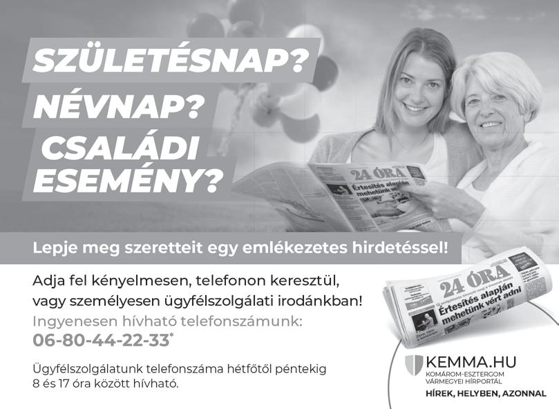 Csütörtökön gyakran takarhatják felhők a napot, és ezeken a tájakon eső, zápor kialakulhat, estétől délnyugaton pedig megdörrenhet az ég.u 13 MAHOLNAP 23 18 Boldog névnapot kívánunk Mózes és Botond nevű olvasóinknak! 772939804042 9 24113 WWW.KEMMA.HU KOMÁROM-ESZTERGOM VÁRMEGYEI 2024. MÁ