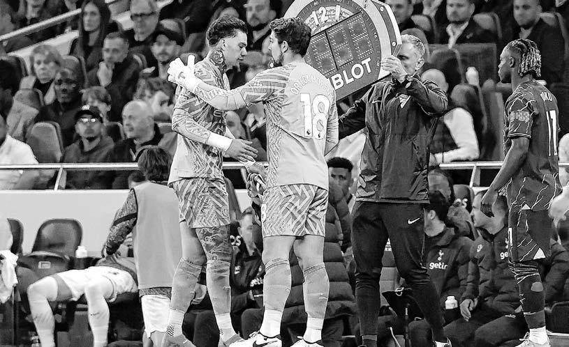 kulcsembere, Kevin de Bruyne és Ederson is ápolásra szorult a meccsen, és le is cserélte őket. Ederson meglehetősen dühösen, sűrű szitkozódások között vonult le a pályáról, majd egy vizespalackon töltötte ki a mérgét. A helyére beállt Stefan Ortega egy alkalommal óriási bravúrral védett, amiről Josep Guardiola ezt mondta: – Ortega megmentett minket a végén, máskülönben az Arsenal bajnok lett volna. Tudják, hogy Szon hányszor büntetett meg minket az elmúlt hét-nyolc évben? Azt mondtam magamban, hogy nem, nem történhet meg megint, és Stefan bemutatott egy fantasztikus védést. Az egy az egy elleni szituációkban az egyik legjobb kapus, akit valaha láttam. Érdekesség, hogy a Tottenham szurkolói vígan ünnepelték a csapatuk vereségét, mert így várhatóan legalább nem az Arsenal lesz a bajnok… MW