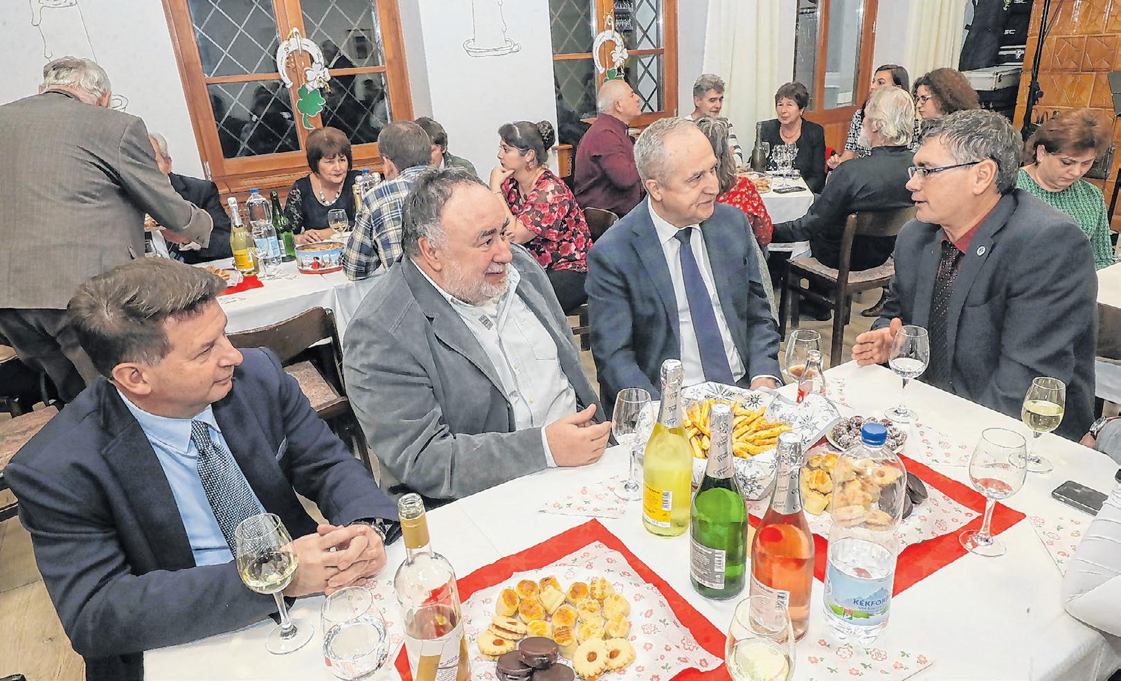 A paloznaki újévi köszöntőn Hebling Zsolt alsóörsi polgármester, Ambrus Tibor csopaki polgármester, Kontrát Károly parlamenti képviselő és Czeglédy Ákos helyi polgármester Fotó: Penovác Károly