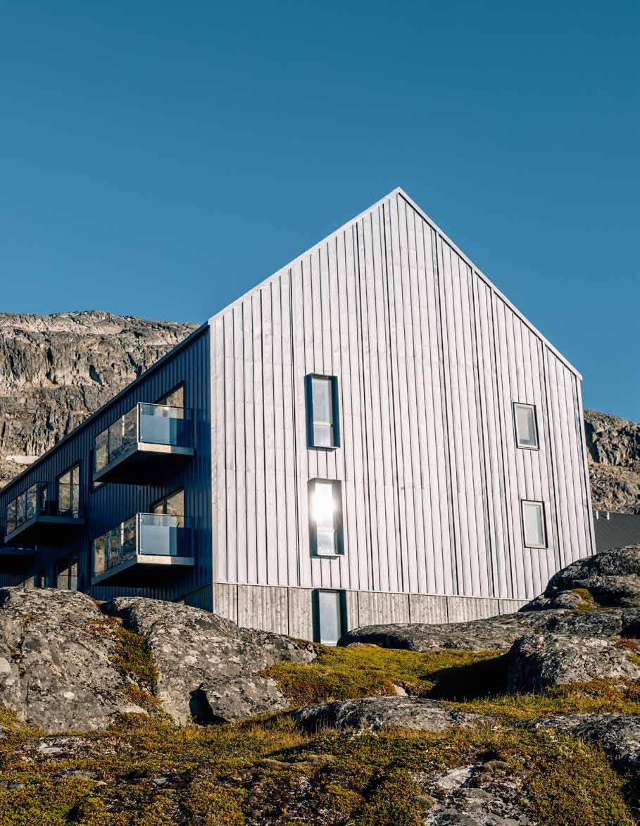 – Vi bygger derfor meget vindtæt og anvender f.eks. fibercementplader som vindspærre. Facader udføres i fibercement eller stål, fordi de kræver mindre vedligehold end f.eks. træbeklædning i det arktiske klima.
