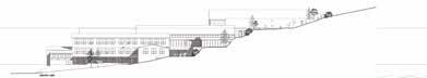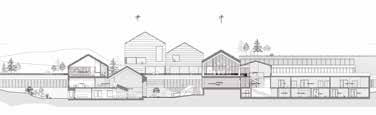 Den nye skole udformes som en klynge af sammenkoblede bygninger, der følger terrænets naturlige hældning. På den måde bliver landskabet ikke blot en kulisse, men en aktiv medspiller i undervisning, leg og bevægelse. Indgangene orienteres, så eleverne naturligt bevæger sig mellem ude og inde – og hele dagen stimuleres af sanseindtryk, nysgerrighed og fysisk aktivitet.