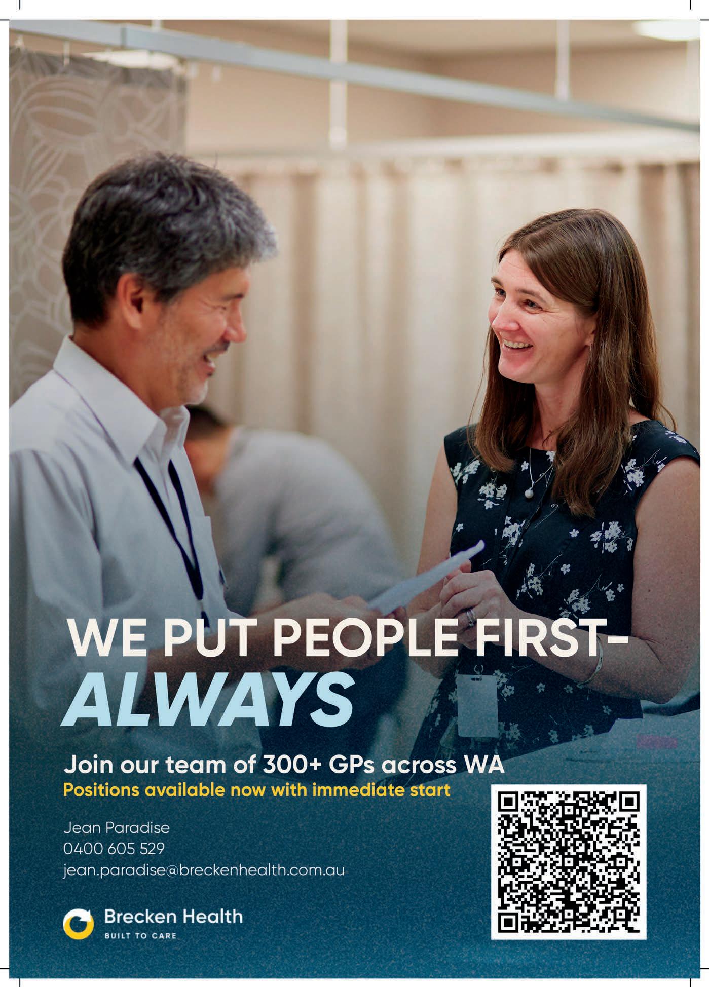 DISCLAIMER Medical Forum is published by Medforum Pty Ltd (Publisher) as an independent publication for health professionals in Western Australia. Neither the Publisher nor its personnel are medical practitioners, and do not give medical advice, treatment, cures or diagnoses. Nothing in Medical Forum is intended to be medical advice or a substitute for consulting a medical practitioner. You should seek immediate medical attention if you believe you may be suffering from a medical condition. The support of all advertisers, sponsors and contributors is welcome. To the maximum extent permitted by law, neither the Publisher nor any of its personnel will have any liability for the information or advice contained in Medical Forum. The statements or opinions expressed in the magazine reflect the views of the authors and do not represent the opinions, views or policies of Medical Forum or the Publisher. Readers should independently verify information or advice. Publication of an advertisement or clinical column does not imply endorsement by the Publisher or its contributors for the promoted product, service or treatment.