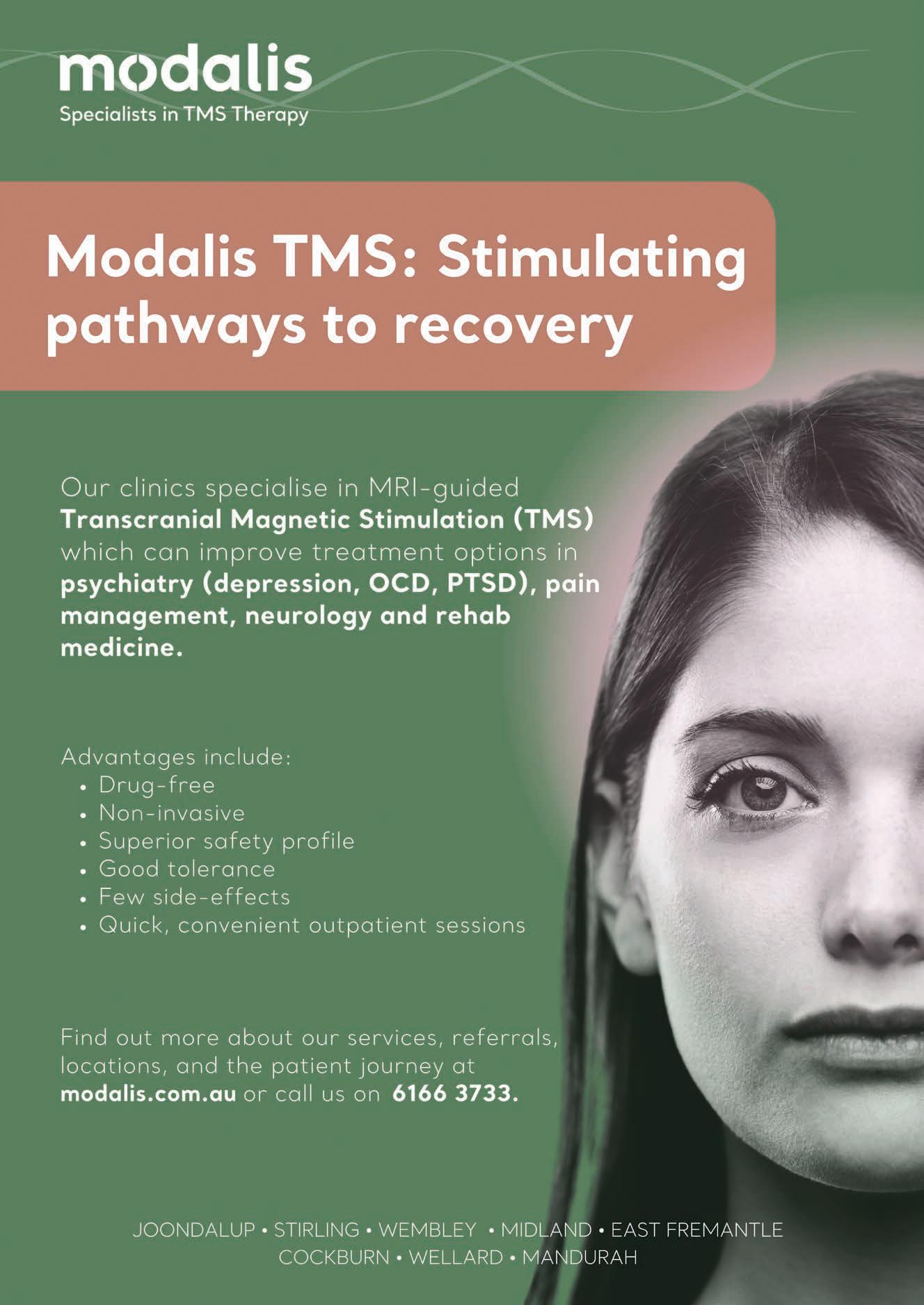 DISCLAIMER Medical Forum is published by Medforum Pty Ltd (Publisher) as an independent publication for health professionals in Western Australia. Neither the Publisher nor its personnel are medical practitioners, and do not give medical advice, treatment, cures or diagnoses. Nothing in Medical Forum is intended to be medical advice or a substitute for consulting a medical practitioner. You should seek immediate medical attention if you believe you may be suffering from a medical condition. The support of all advertisers, sponsors and contributors is welcome. To the maximum extent permitted by law, neither the Publisher nor any of its personnel will have any liability for the information or advice contained in Medical Forum. The statements or opinions expressed in the magazine reflect the views of the authors and do not represent the opinions, views or policies of Medical Forum or the Publisher. Readers should independently verify information or advice. Publication of an advertisement or clinical column does not imply endorsement by the Publisher or its contributors for the promoted product, service or treatment.