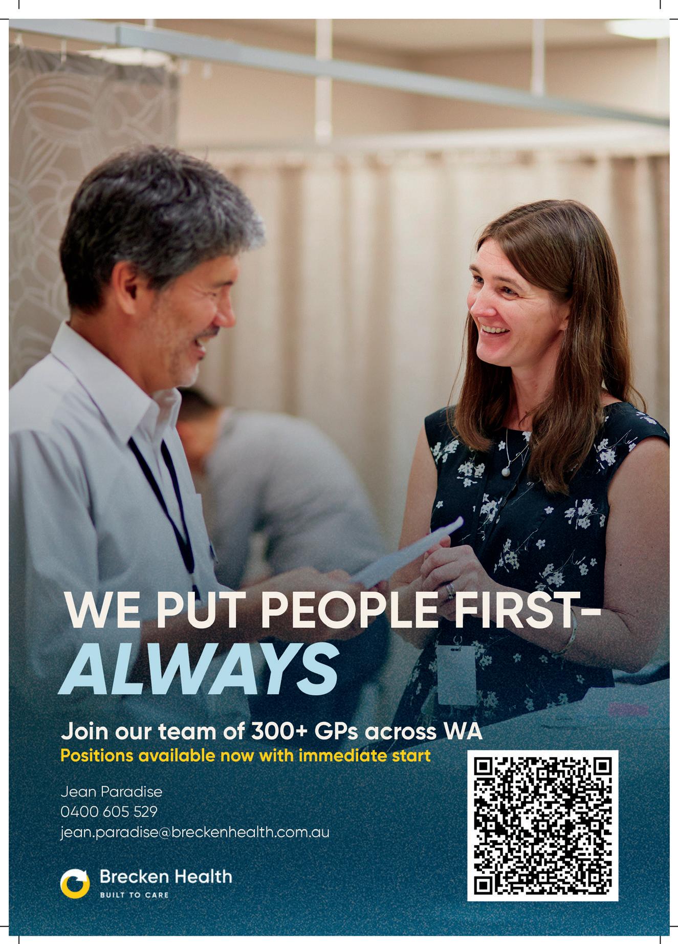 DISCLAIMER Medical Forum is published by Medforum Pty Ltd (Publisher) as an independent publication for health professionals in Western Australia. Neither the Publisher nor its personnel are medical practitioners, and do not give medical advice, treatment, cures or diagnoses. Nothing in Medical Forum is intended to be medical advice or a substitute for consulting a medical practitioner. You should seek immediate medical attention if you believe you may be suffering from a medical condition. The support of all advertisers, sponsors and contributors is welcome. To the maximum extent permitted by law, neither the Publisher nor any of its personnel will have any liability for the information or advice contained in Medical Forum. The statements or opinions expressed in the magazine reflect the views of the authors and do not represent the opinions, views or policies of Medical Forum or the Publisher. Readers should independently verify information or advice. Publication of an advertisement or clinical column does not imply endorsement by the Publisher or its contributors for the promoted product, service or treatment.