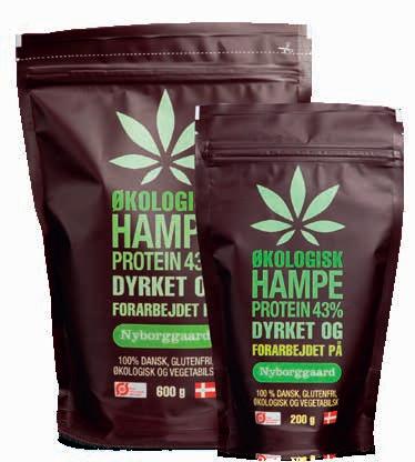 Nyborggaards hampeproteinpulver er 100 % vegetabilsk og indeholder alle de essentielle aminosyrer, kroppen har brug for. Det er helt smagsneutralt, så det er anvendeligt i al slags mad.