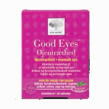Det naturlige brand New Nordic har udviklet tre produkter med hvert sit speciale. De lanceres under fællesnavnet Good Eyes med undertitlerne Øjenfugtighed, Øjenvitamin og Øjentræthed, og de indeholder udtræk af bl.a. blåbær, havtorn, safran og fyrrebark samt en række vigtige vitaminer.