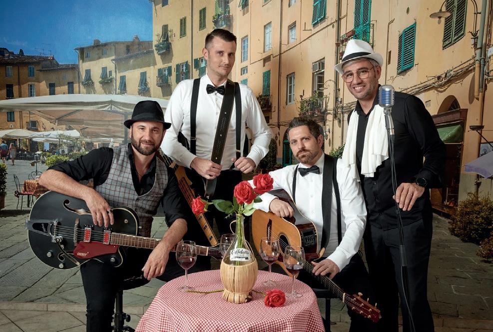 Musik, Charme und Italianità! Caffélatte - die Italo Cover-Band aus Liechtenstein, die mit Juwelen aus der italienischen Musikgeschichte das Publikum begeistert. Die Lieder auf eigene Art und Weise zu interpretieren, verleiht der Band ihren einzigartigen Charakter. Durch ihren eigenen Stil und der theatralischen Performance erstrahlen die musikalischen Raritäten in neuem Glanz. Gabriele Manco, Gesang / Simone Virdo, Rhythm-Guitar / Rocco Miggiano, Solo Guitar, Background Gesang / Patrick Banzer, Bass