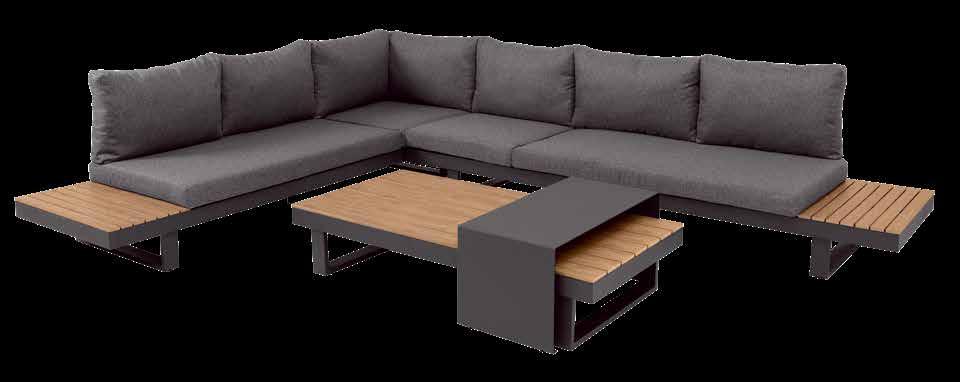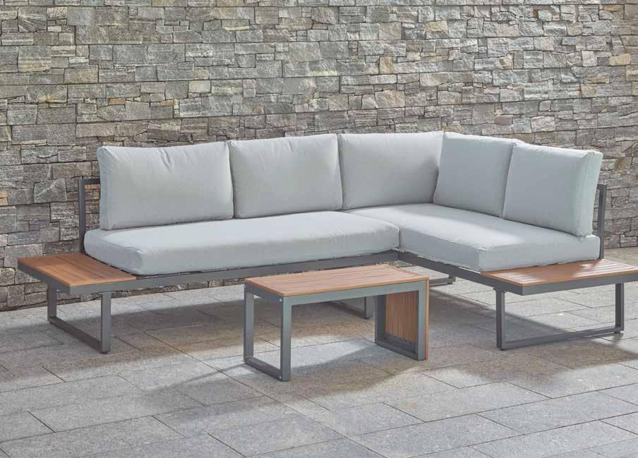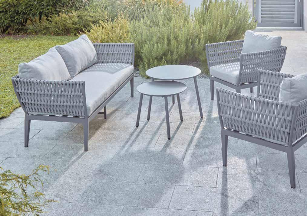 1x 2-Sitzer-Bank (BxHxT): 173x70x67 cm, 2x Sessel (BxHxT): 72x70x67 cm, 2x Tisch (ØxH): 60x47 cm und 50x42 cm, Material: Aluminium, Kissen aus Polyester, Farbe: grau 43176463