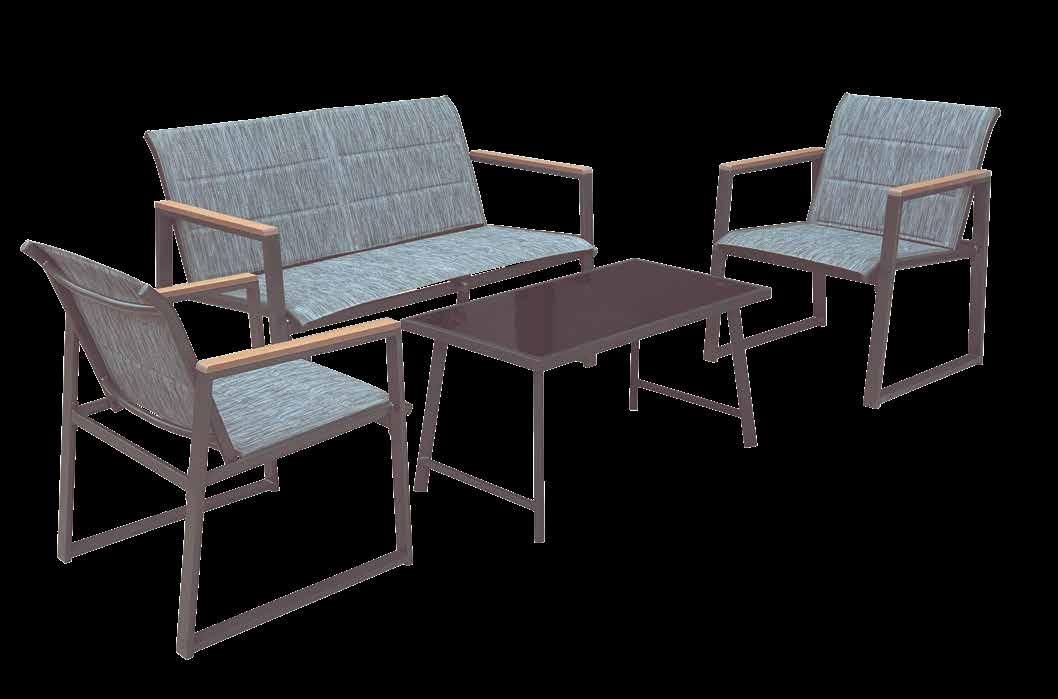 1x 2-Sitzer-Bank (BxHxT): 116x69x83 cm, 2x Sessel (BxHxT): 59x69x83 cm, 1x Tisch (LxBxH): 95,5x45,5x45 cm,