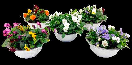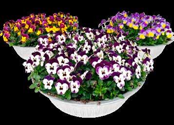 Arrangement in 19-cm-Zinkschale, Viola cornuta, verschiedene Bepflanzungen