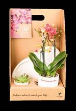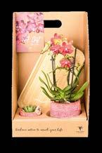 Bestehend aus einer Phalaenopsis 2 Trieber und Sukkulente, in Geschenksverpackung, Topfgröße 9 cm und 6 cm, ca. 40 cm hoch, in verschiedenen Farben und Variationen, je