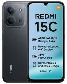 6,9“/17,52 cm Dot Drop Display, Octa-Core Prozessor, 50MP AI Dual-Kamera, 8 MP Frontkamera, 128 GB interner Speicher (erweiterbar um bis zu 2 TB), 4 GB RAM, Xiaomi HyperOS2 Betriebssystem, 6000 mAh Akku. 2 Jahre Garantie