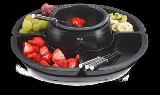 Einfache Reinigung dank abnehmbarer Schüsseln, abnehmbare Schmelzschale (500 ml), 4 abnehmbare Servierfächer, inkl. 4 Spieße.