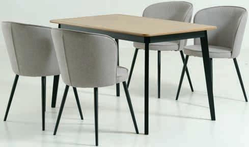Tisch: Dekorfolie und Stahl. B80 x L120 x H75 cm 149,- 75,Stuhl: Stoff und Stahl. 79,99 60,-