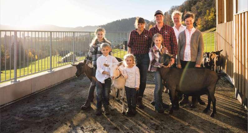 Sonne undtaucht die Natur in ein herrliches Farbenspiel aus bunt gefärbten Bäumen. Ein Traumwetter im Spätherbst, den auch die Ziegen genießen. Wasdie Milchbetrifft, sind sie dann durchaus spendierfreudiger. „Sie liebenes, wenn es trocken ist, nasse Füße mögen siehingegen überhaupt nicht“, sagt die Magistra für Betriebswirtschaft und Gesundheitssport, dieinder Landwirtschaft eine neue Berufung gefunden hat. Die Tochter des ehemaligen Spitzenskiläufers HubertBerchtold,der einen Weltcupsieg imRiesentorlauf feierte, teilt sich die Arbeit mit ihrem Mann Christoph. Christoph, der seine Energie nicht nur zuhause in die eigene Zucht steckt, sondern sieauch als Obmann des Ziegenzuchtverbandes Bregenzerwald weiter nachaußen trägt. Vorfünf Jahren übernahm das Paar den elterlichen Hof von Mina und Klaus Schwarz undführt ihn als Generationenbetrieb weiter