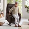 Bezug Microfaser, Gestell Balkeneiche natur massiv, Gurtfederung im Sitz.