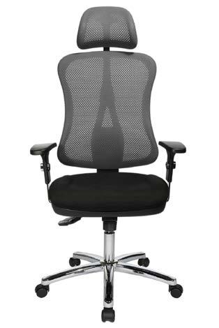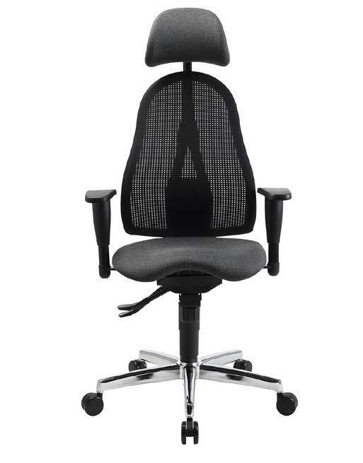 Chefsessel, 100% Polyester, höhenverstellbare Rückenlehne, orthopädisch ausgeformter Sitz mit Body-Balance-Tex-Gelenk, Synchronmechanik, höheneinstellbare Armlehne, inkl. Kopfstütze und verstellbarer Armlehne. Art.-Nr. 82113