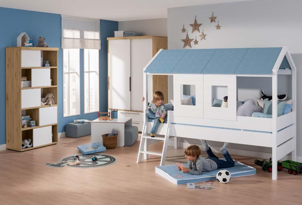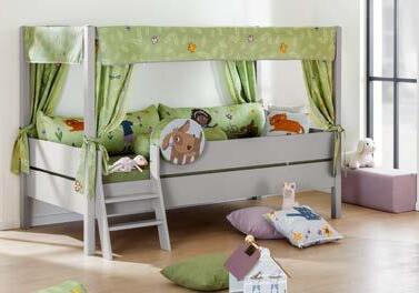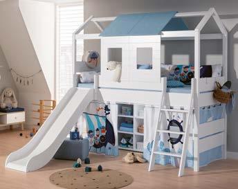 Verwandle das Kinderbett mit Baldachin, Vorhängen und Kissen in eine gemütliche Höhle, gestalte das Spielbett mit Rutsche für fantasievolle Abenteuer oder schaffe unter dem Hochbett eine Nische mit