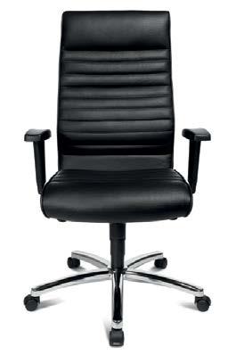 Chefsessel, Bezug Kunstleder-Softex, Muldensitz, Rückenlehne in der Höhe über Rastermechanik verstellbar, inkl. Sitzneige- und Sitztievenverstellung, Federkraft individuell auf das Körpergewicht einstellbar, inkl. höhen- und neigungsverstellbarer Kopfstütze, verstellbare Armlehne, Fußkreuz schwarz mit Sicherheitsdoppelrollen. Art.-Nr. 81736
