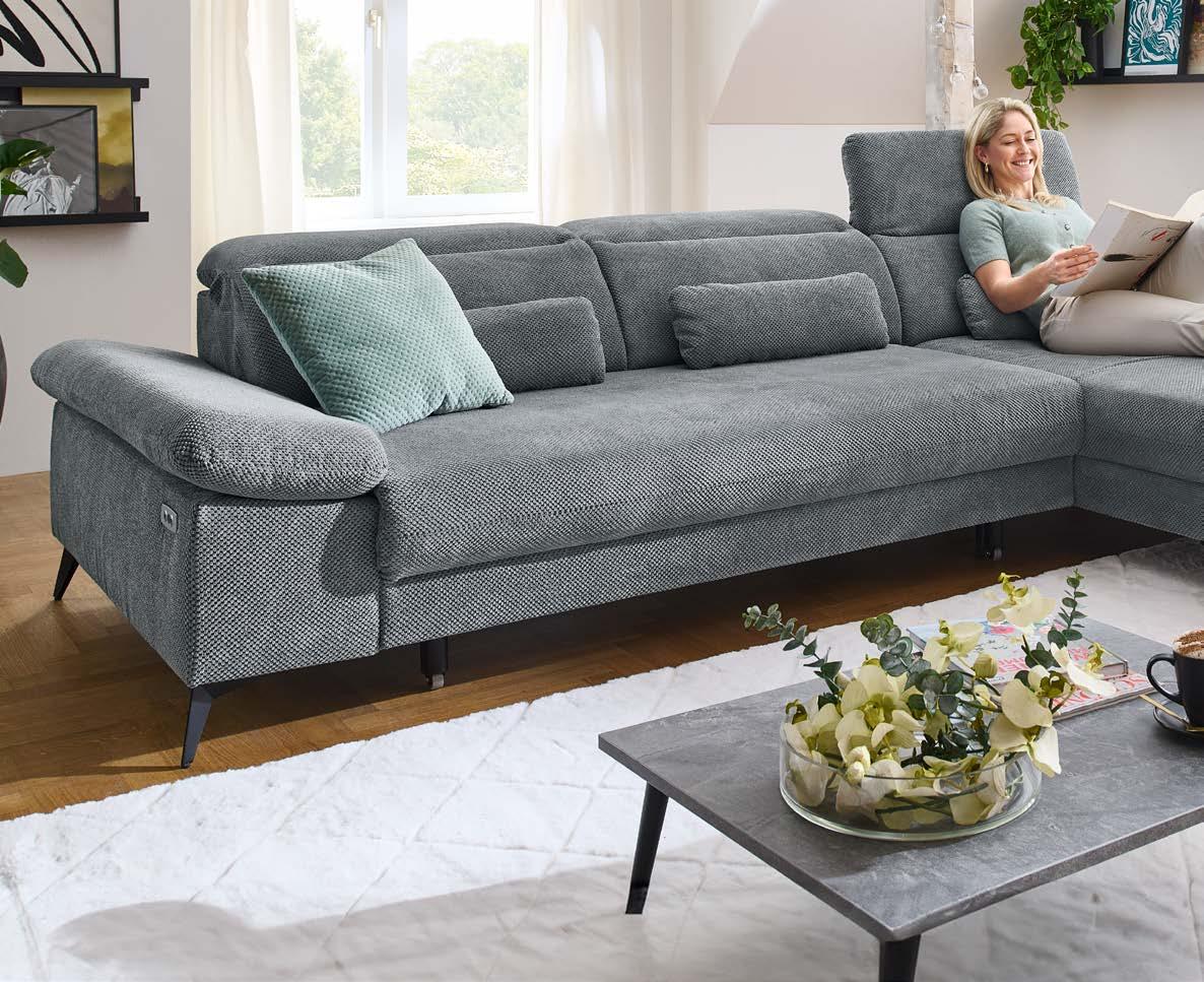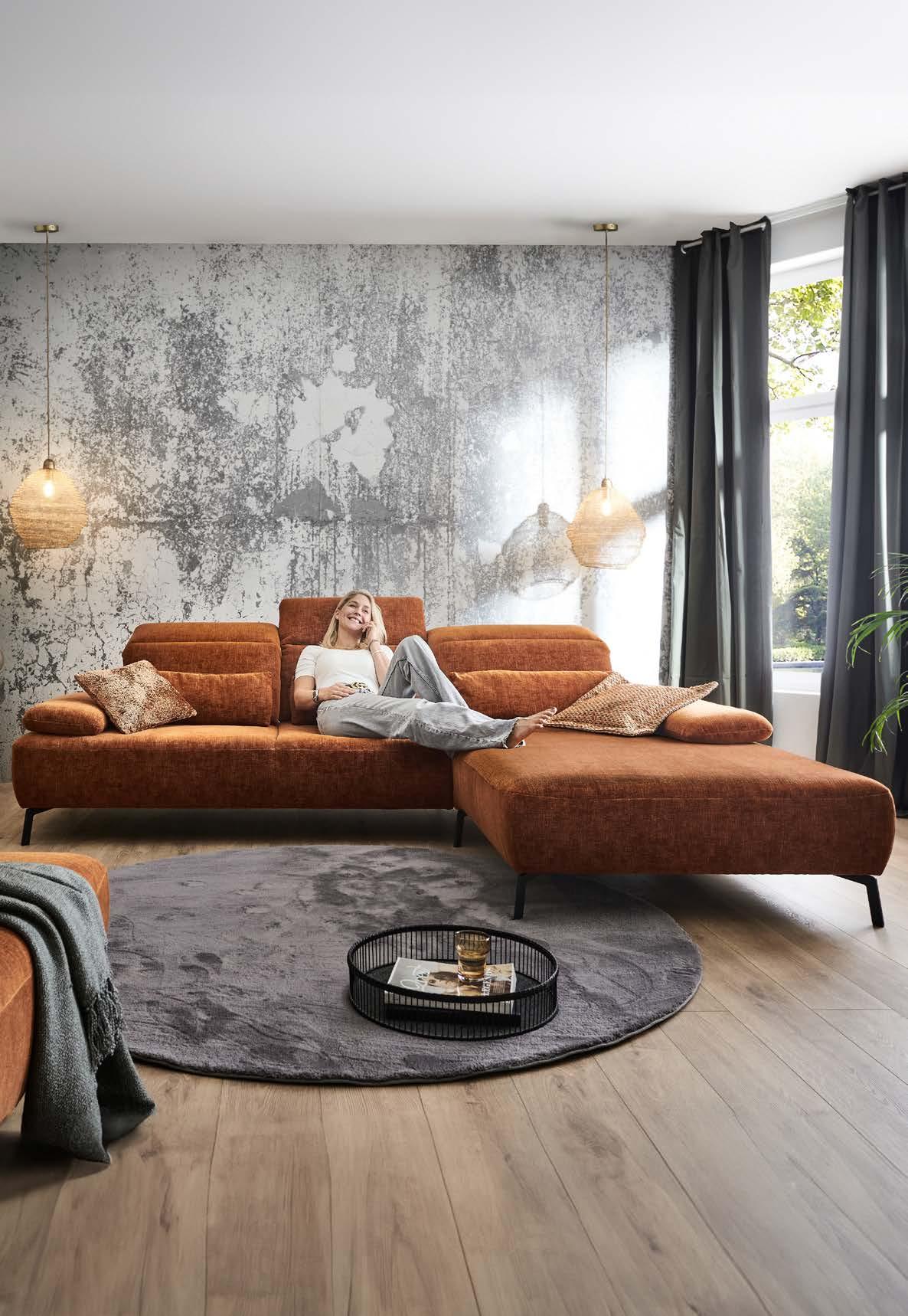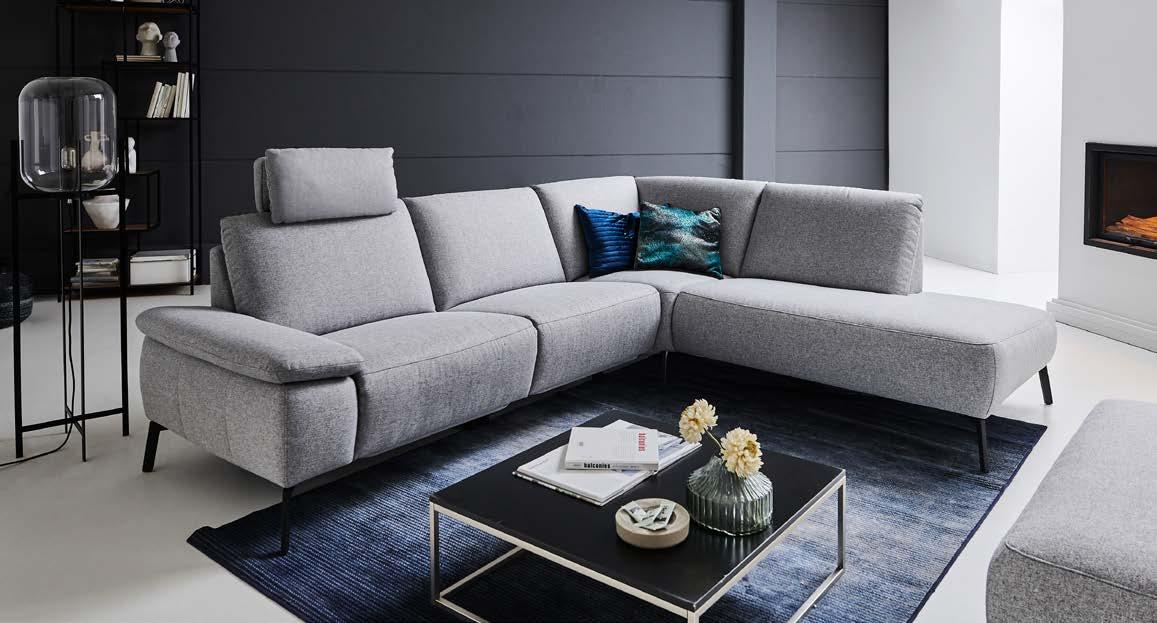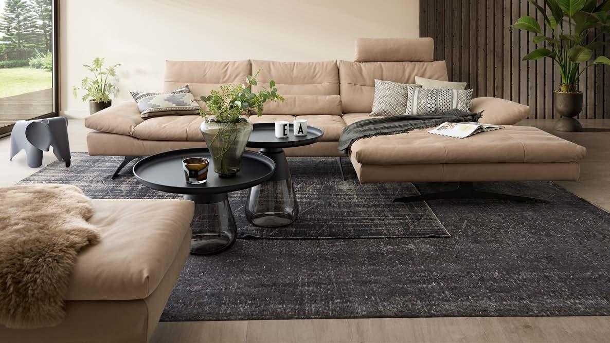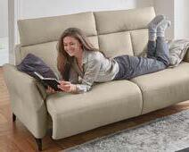 Funktionssofa-System , versch. Bezüge, Metallfuß chromfarbig oder Holzfuß Buche. Ohne Dekokissen.