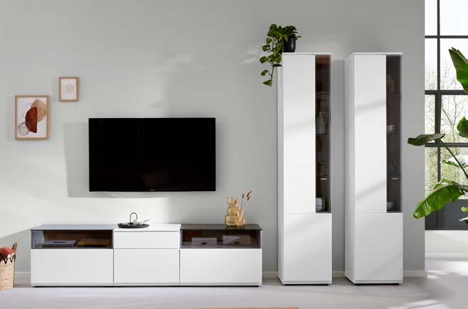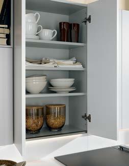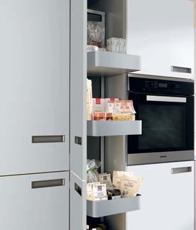 Attraktives Organisationstalent: Trotz ihres schlanken Designs erweisen sich die Schränke als eindrucksvolles Raumwunder. Integrierte Auszüge sorgen für Übersicht und alles ist schnell griffbereit.