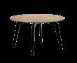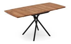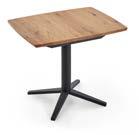 Systemtisch, formschöne Massivholz Oberteile mit weicher Profilkante, Plattenform mit elegant geschweiften Seiten Wildeiche massiv, Micadogestell Metall schwarz ca. 90(130)x70 cm, eine innenliegende Falteinlage 40 cm.