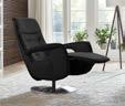 Design-Armlehnenstuhl, Gestell Stativ, Eisen schwarz, 360° drehbar mit Rückholfunktion, Bezug Webstoff