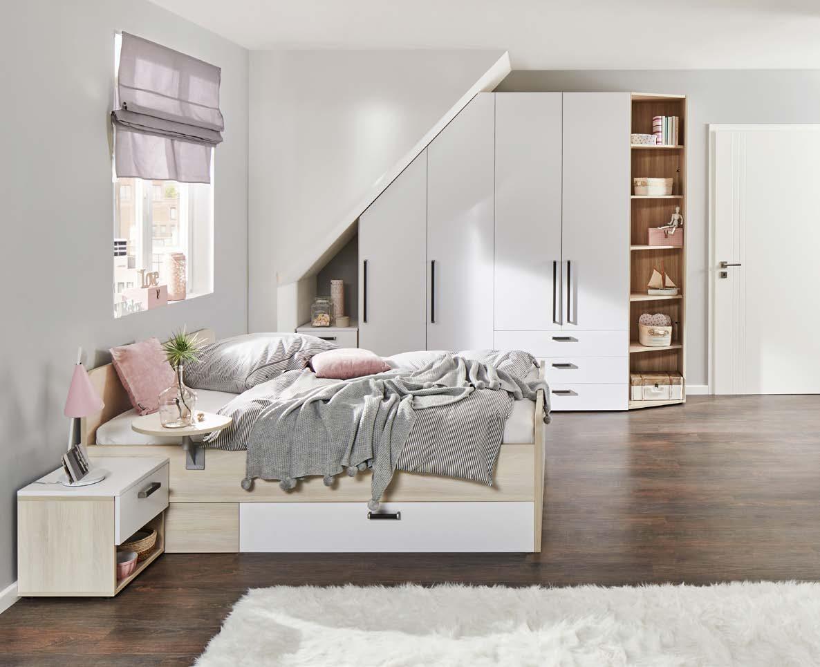 Sonderanfertigungen für Kleiderschränke sind hier kein Problem – neben Breiten-, Höhen- und Tiefenkürzungen sind auch Abschrägungen möglich. Somit steht den individuellen Raumlösungen nichts im Wege.