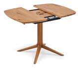 Systemtisch, Tischplatte mit weicher Profilkante und elegant geschweiften Seiten, Wildeiche massiv, Säulengestell Massivholz, ca. 85(125)x85 cm, eine innenliegende Falteinlage 40 cm.