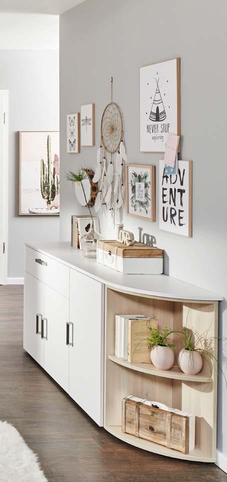 Ob zum Verstauen oder Dekorieren, das elegante Sideboard ist ein Allrounder. Es fühlt sich als Hingucker in Küche, Ess- und Wohnbereich gleichermaßen wohl und bietet zahlreiche Möglichkeiten der Individualisierung.