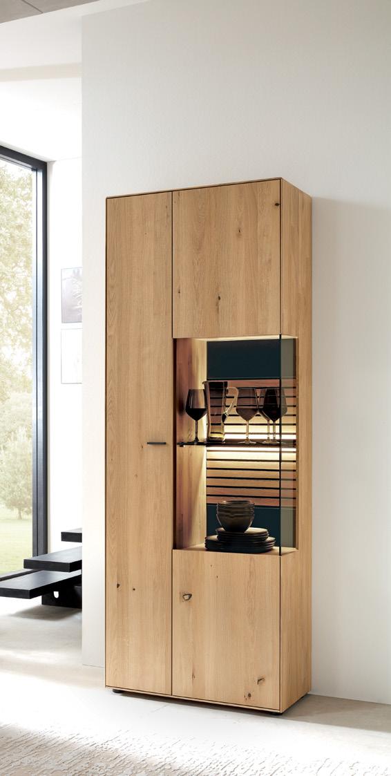 Speisezimmer-Programm, Wildeiche geölt, Front massiv, Korpus Echtholzfurnier, Beleuchtung gegen Mehrpreis. Ohne Deko.
