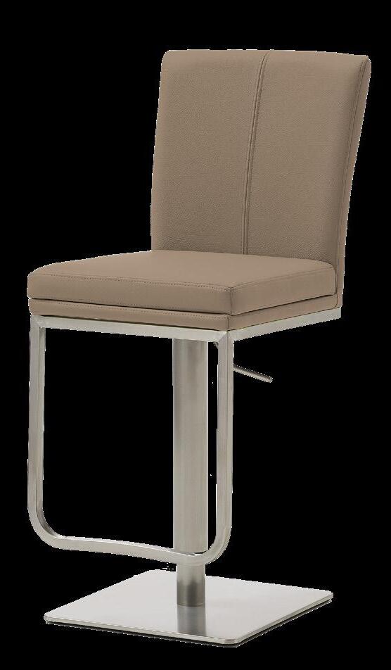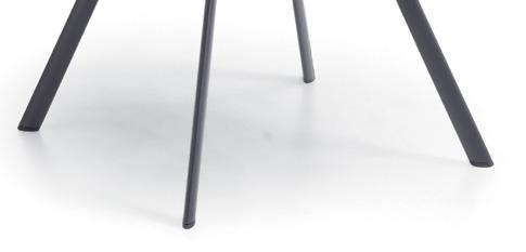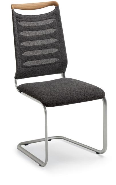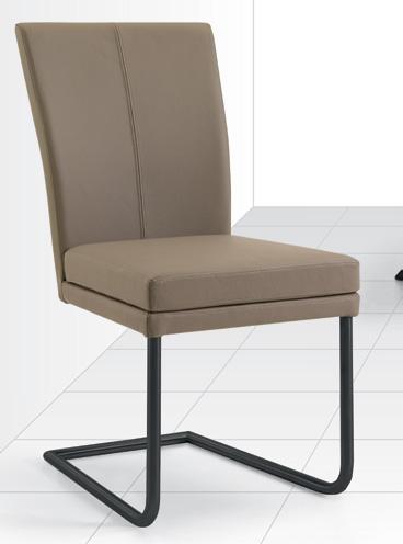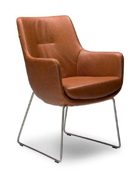 Die Sitze dieses formschönen Esszimmerstuhls sind mit einem hochwertigen Stoff- oder Lederbezug ausgestattet. Zur Wahl stehen ein Vierfuß und ein Schlittengestell, jeweils in Edelstahl oder mit Pulverbeschichtung in verschiednen Farben. Das Vierfußgestell kann auf Wunsch mit Rollen oder einer