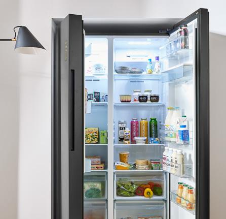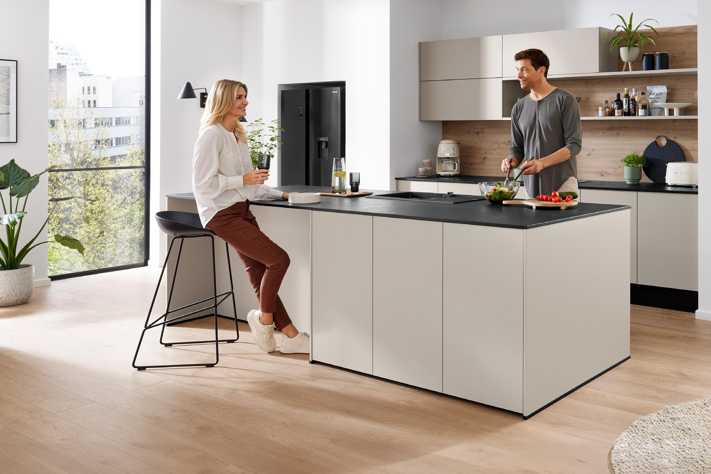Die separat stehende Side-by-Side Kühl-/Gefrierkombi bietet viel Stauraum.