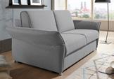 Funktionssofa, Bezug Stoff grau, Polyschaumpolsterung in Sitz und Rücken, 11 cm dicke Kaltschaummatratze mit Matratzenbezug abnehmbar, Metallrahmenunterfederung, inkl. Bettkasten, Armteile klappbar, Chromfuß, ca. B156(196)/H86/T97 cm, Liegefläche ca. 150x200 cm. Bezug: 100% Polyester. Ohne Zierkissen und Deko. Modell-Nr.: 58746