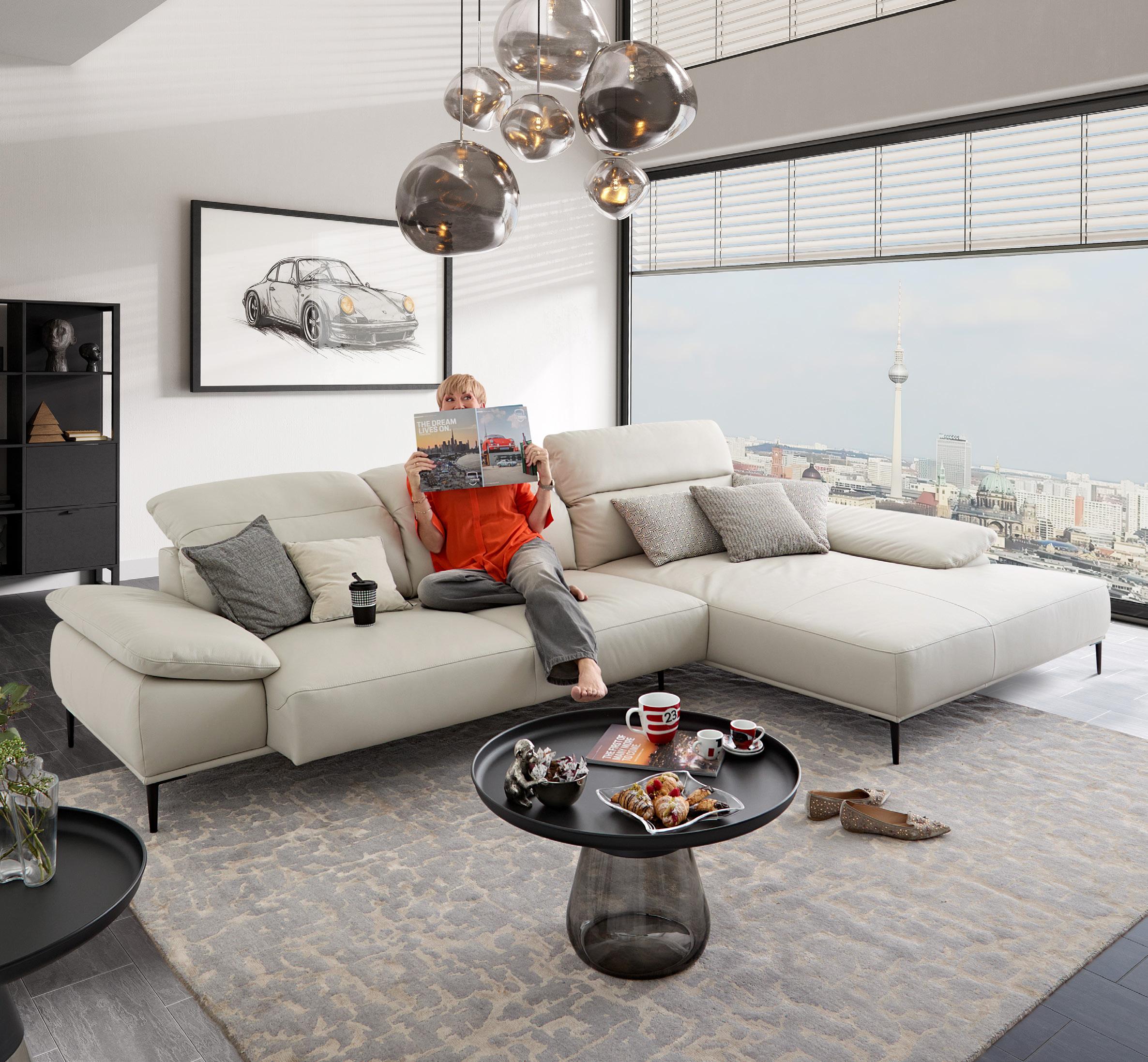 Die Seitenteilverstellung ist inklusive. Das Sofa-System bitet viele Kombinationsvarianten – auch als Ecksofa mit Funktion.