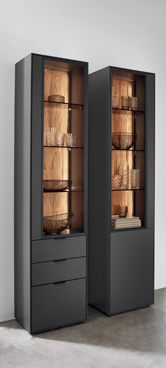 Für den Wow-Effekt: Haben Sie schon das getönte Glas und die geschroppte Rückwand in den Vitrinen entdeckt?