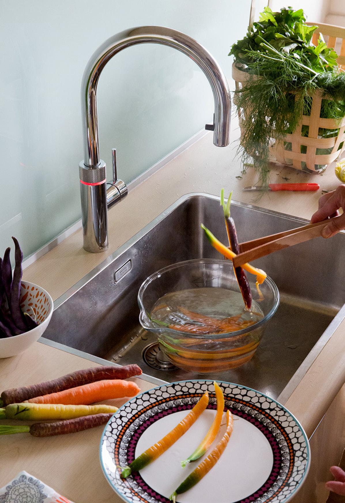 Denn die Einsatzmöglichkeiten von Quooker sind vielfältig: Ob Sie Kartoffeln oder Reis kochen, Spargel garen, Gemüse blanchieren, Tee aufgießen, Schnuller sterilisieren oder Babynahrung zubereiten wollen – Quooker ist die energie- und wassersparen-
