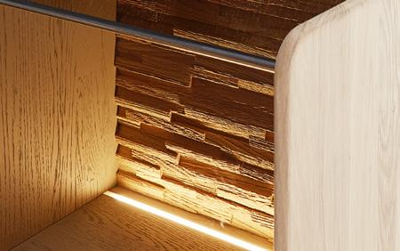 Spaltholz massiv, optionaler Akzent für Vitrinenrückwände