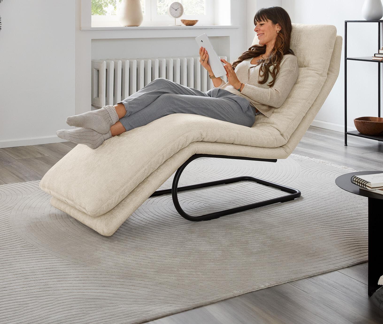 Kombinationsbeispiel, Bezug Stoff, Metallkufe schwarz, Stellmaß ca. 323x206 cm, inkl. Sitztiefenverstellung. Seitenteilverstellung optional gegen Mehrpreis. Ohne Kissen und Deko. In Stoff ab 2998,-