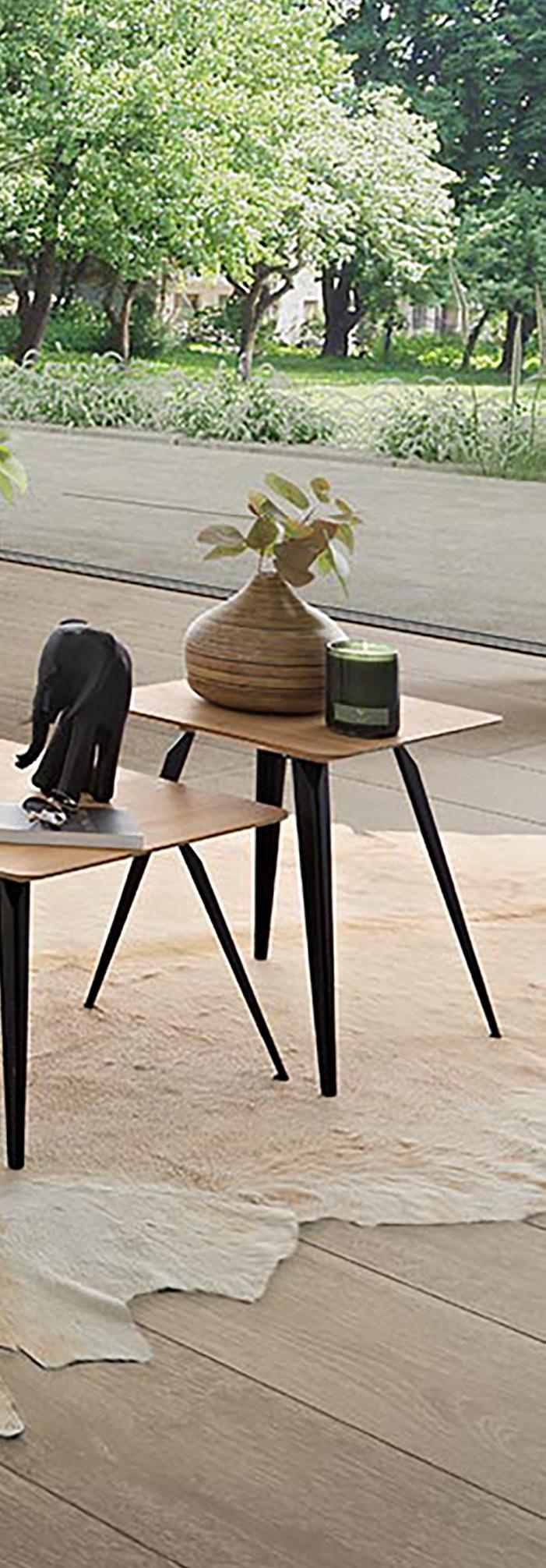 Kombinationsbeispiel: Gestell in Eisen schwarz und Tischplatte in Wildnussbaum geölt.