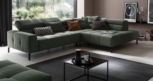 Design-Bank, Bezug Cord, besonderer Sitzkomfort durch den Micro-Taschenfederkern im Sitz, ca. 200 cm breit 1195,-