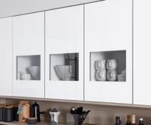 Elegante Glassegmenthänger lockern die kristallweiße Front durch dezente Einblicke angenehm auf.