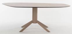 Esstisch, Platte Dekton in Demioval, Säulengestell Metall pulverbeschichtet, ca. 200x115x77 cm.