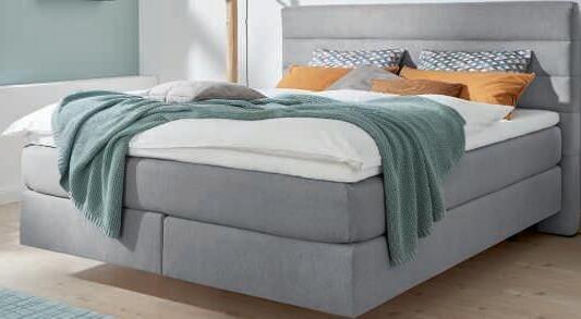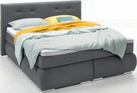 Bezug Stoff Line graphite, Metallfuß schwarz, Kopfteil Idö, ca. H130 cm, geteilte Box, inklusive Boxhusse und Keder, Kombikernmatratze 7-Zonen 1000 Tonnen-Taschenfederkern, H2/H4, Topper Comfort, Liegefläche ca. 180x200 cm.