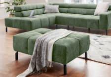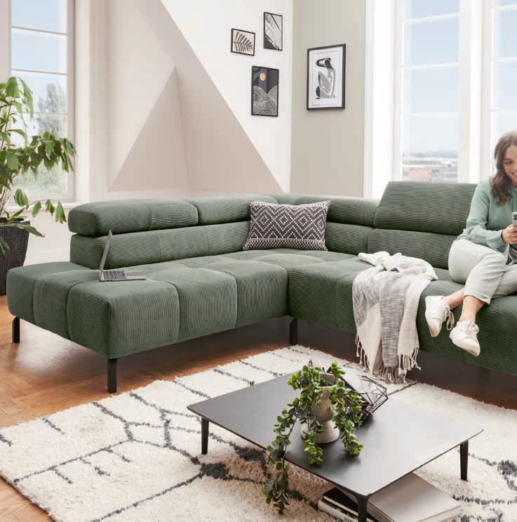 ECKKOMBINATION, Bezug Stoff Feincord oliv, Metallfuß schwarz matt, best. aus: Umbauecke links und 2-Sitzer mit Armteil rechts, inkl. Kopfteilverstellung an allen Elementen, Stellmaß ca. 219x276 cm. Bezug: 95% Polyester, 5% Nylon 196115