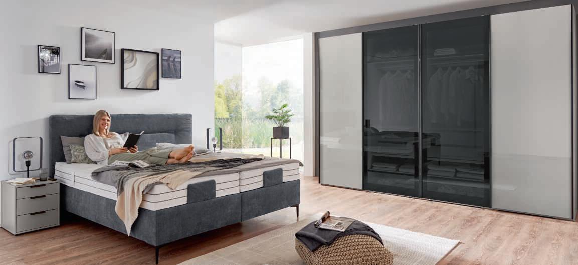 Extra viel Platz zum Kuscheln und Entspannen bietet das motorisch verstellbare Canapé. Gegen Mehrpreis