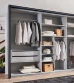 SCHWEBETÜRENSCHRANK, 3-türig, Front und Korpus graphit, mittlere Tür mit Lamellen in Bianco Eiche Nachbildung , ca. B300/H217/ T67 cm. 144066