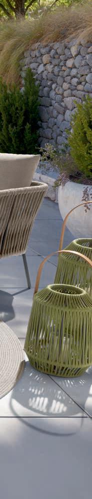 15. Beistelltisch, Ø/H ca. 60/48 cm 16. Beistelltisch, Ø/H ca. 55/43 cm 17. Sitzkissen, rot Bezug 100% Polyacryl, B/H/T ca. 44/3/44 cm 18. Laterne, Aluminiumgestell pulverbeschichtet, Kordel rot oder schiefergrau 100% Polyacryl, versch. Größen, z.B. Ø/H ca. 30/39 cm