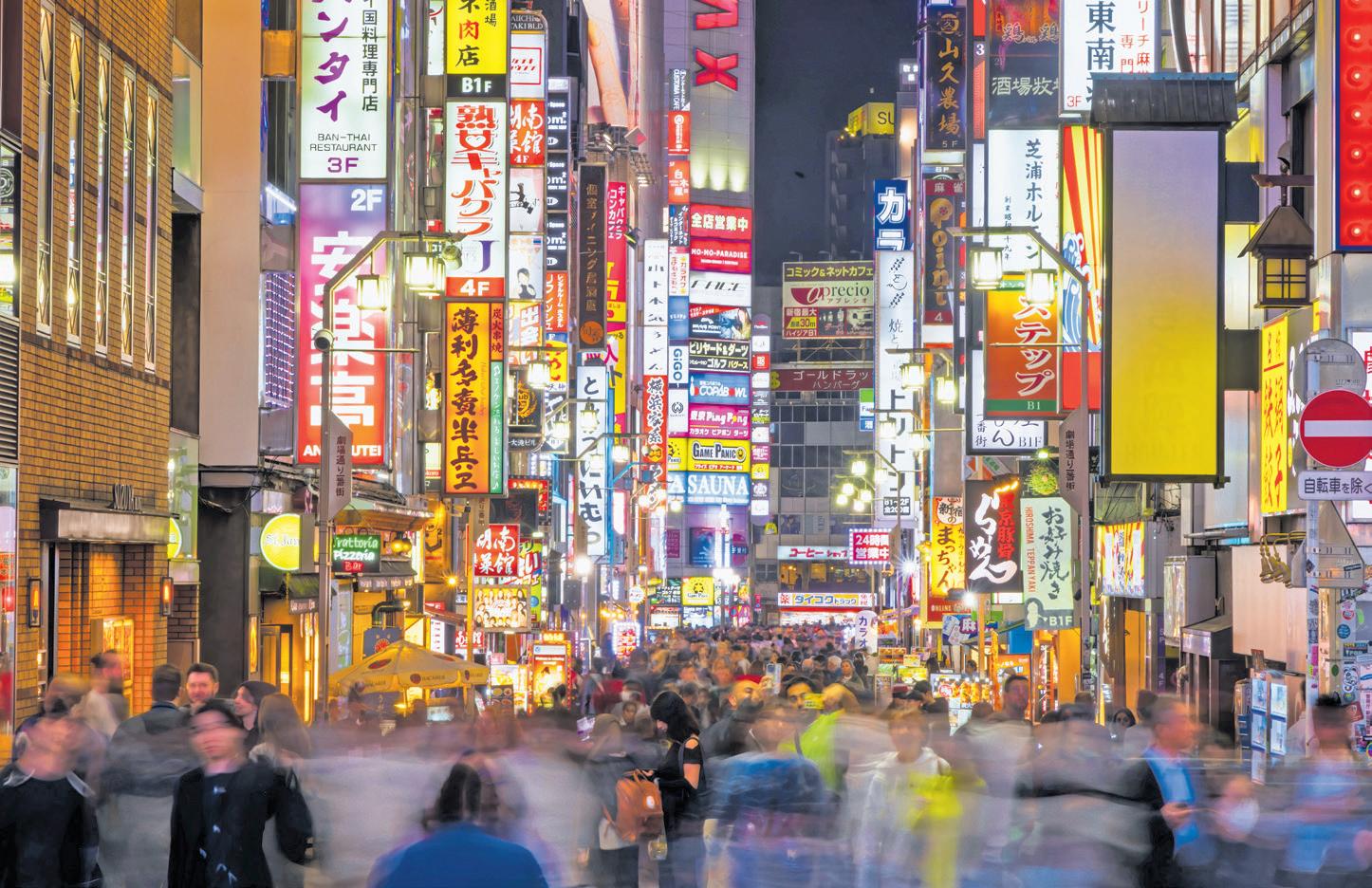 Links: Die Werke von Haruki Murakami lassen die Neonlichter von Tokio lebendig werden.